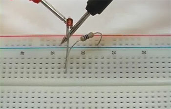 Para colocar resistores, capacitores, diodos y transistores fácilmente, podemos usar una pinza con la que doblar sus patas. También podemos acortárselas con un cúter. De esta manera evitaremos que queden demasiado elevados por encima del protoboard.